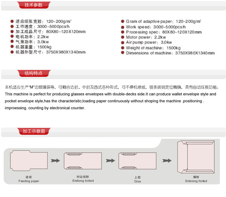 全自動M邊袋糊盒機(jī)采用**的時規(guī)皮帶進(jìn)行傳動,它可以保證平穩(wěn),傳動準(zhǔn)確以及低噪音的機(jī)器設(shè)備,使用變頻器進(jìn)行控制,調(diào)速平衡。糊盒機(jī)在包裝印刷行業(yè)應(yīng)用范圍是**為廣泛的,它是包裝盒加工的**后一道工序,主要就是將已經(jīng)印刷好的或者模切成型的產(chǎn)品粘好糊口,它代替了手工糊盒方式。ZF-90型全自動M邊袋糊盒機(jī)的使用具有很多使用性能,工作效率得到了提高,降低了勞動成本,它可以制作很多不同的糊盒,可以制作異型盒以及六角盒等等。