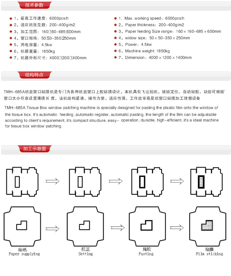 TMH-685A型全自動(dòng)紙盒窗口貼膜機(jī)
