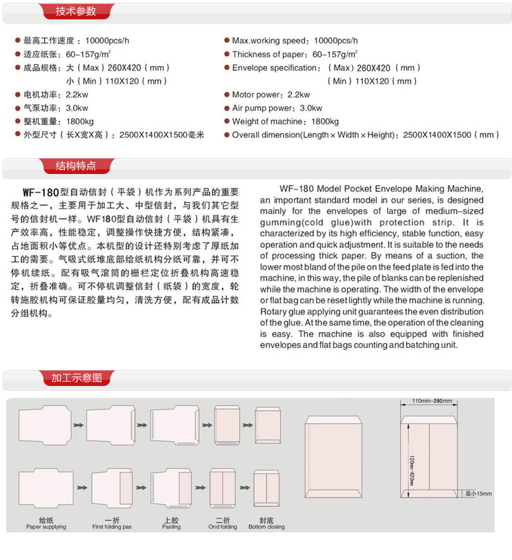 - WF-220型中式信封紙袋機(jī),氣吸式底部抽紙機(jī)構(gòu)分紙可靠,可持續(xù)供紙。 紙張定位機(jī)械調(diào)節(jié)方便,定位準(zhǔn)確。