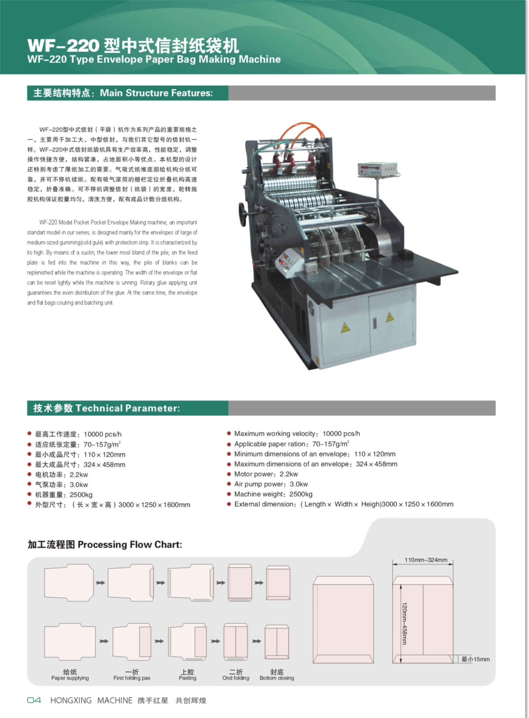 - WF-180型自動(dòng)信封(平袋)機(jī)作為系列產(chǎn)品的重要規(guī)格之一,主要用于加工大、中型信封機(jī),與我們其它型號(hào)的信封機(jī)一樣。WF180型全自動(dòng)信封機(jī)(平袋)機(jī)具有生產(chǎn)效率高,性能穩(wěn)定,調(diào)整操作快捷方便,結(jié)構(gòu)緊湊,占地面職小等優(yōu)點(diǎn)。本機(jī)型的設(shè)計(jì)還特點(diǎn)考慮了厚紙加工的需要。氣吸式紙堆底部給紙機(jī)構(gòu)分紙可靠。